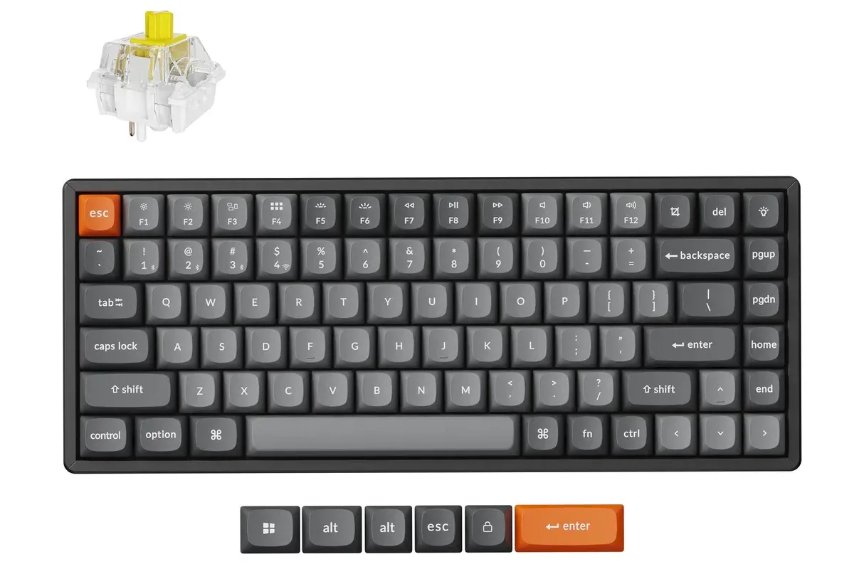 Ce qui distingue immédiatement le Keychron K2, c’est sa qualité de frappe mécanique. Selon les versions, il est proposé avec différents interrupteurs (switchs) : linéaires, tactiles ou clicky, chacun offrant une expérience sensorielle différente. Cela permet à l’utilisateur de choisir une sensation adaptée à sa façon de taper ou de jouer.