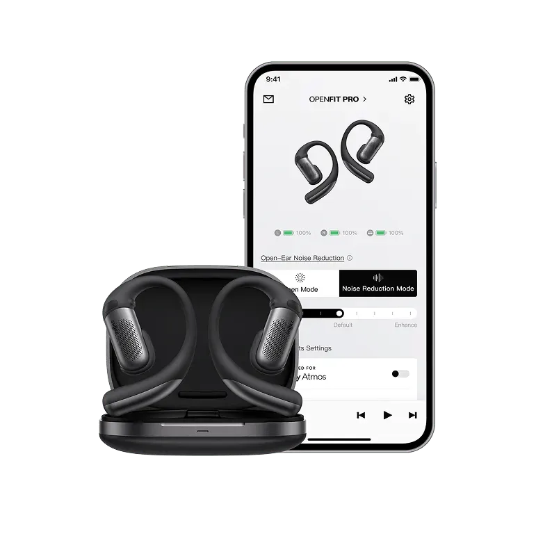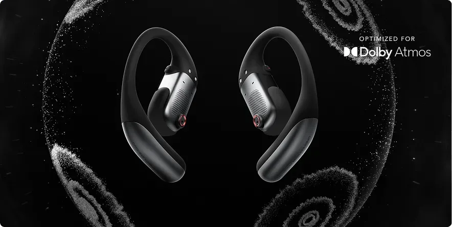 L’une des caractéristiques les plus marquantes des OpenFit Pro est leur son de qualité supérieure. Ce rendu est possible par la technologie SuperBoost™ de Shokz. Il repose sur un haut-parleur à double diaphragme synchronisé de 11 × 20 mm, qui élargit la plage de fréquence jusqu’à 40 kHz pour des aigus détaillés, des basses solides et une distorsion minimale. Cette performance sonore est complétée par la compatibilité avec Dolby Atmos, ce qui crée une sensation spatiale immersive, une rareté dans les écouteurs à oreilles ouvertes.